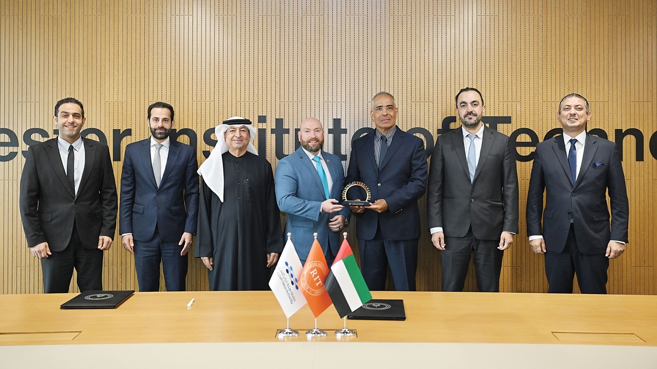 تم توقيع مذكرة التفاهم من قبل الدكتور يوسف العساف رئيس جامعة روتشستر للتكنولوجيا في دبي والدكتور شاون لي ديلي المدير العام لمدارس الإمارات الوطنية.